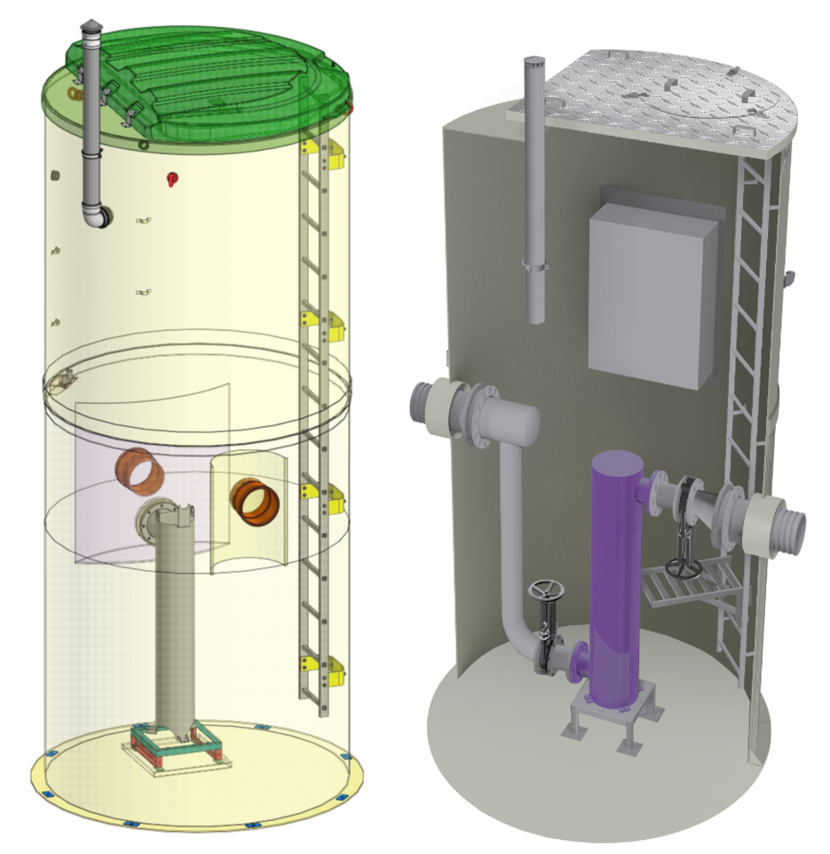 - Изготовление в двух вариантах: в сухом колодце и погружная установка.