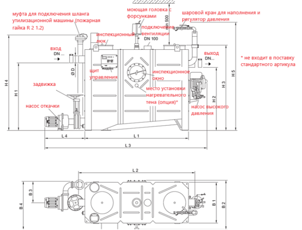 - Откачка и промывка проводится через люки в верхней части корпуса;